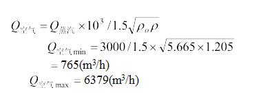 步驟一:計算蒸汽的等效空氣參比條件下的體積流量范圍,經查附表(二),該狀態下蒸汽的密度為:5.665Kg/m3,由公式(8) :